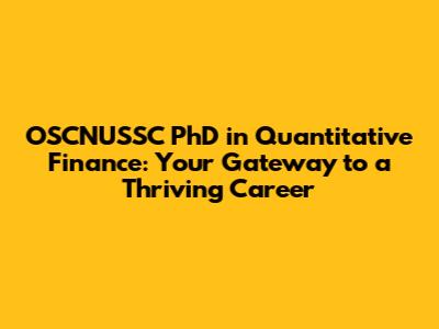 Hey guys! Are you passionate about finance, numbers, and the cutting edge of financial modeling? If so, you might be considering a PhD in Quantitative Finance (Quant Finance). And if you're looking for a top-tier program, the OSCNUSSC PhD program could be the perfect fit for you. This article dives deep into what the program offers, what it takes to get in, and what your career path might look like. So, buckle up, and let's explore the exciting world of Quant Finance!