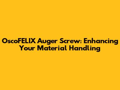 Hey guys! Today, we're diving deep into the world of material handling and focusing on a real game-changer: the OscoFELIX Auger Screw. If you're in an industry that deals with bulk materials, whether it's food processing, chemical manufacturing, or agriculture, you know how crucial efficient and reliable transport is. Downtime is a killer, and incorrect material flow can lead to spoilage, contamination, or just plain old inefficiency. That's where the OscoFELIX Auger Screw comes into play. This isn't just any old screw conveyor component; it's engineered for performance, durability, and precision. We'll break down what makes it special, its key features, and why investing in this piece of equipment could be one of the smartest moves you make for your operation. Get ready to understand why the right auger screw isn't just a part, but a vital organ of your production line.