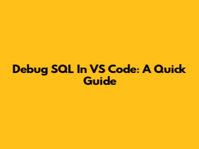 Debug SQL In VS Code: A Quick Guide