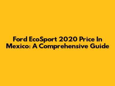 Ford EcoSport 2020 Price In Mexico: A Comprehensive Guide