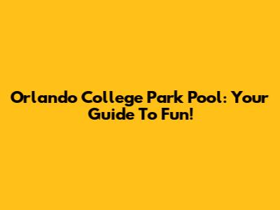 Orlando College Park Pool: Your Guide To Fun!