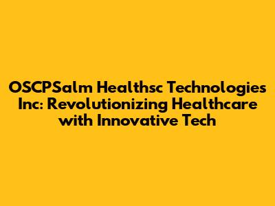 Hey guys! Ever heard of OSCPSalm Healthsc Technologies Inc? If not, buckle up because you're about to dive into a world where healthcare meets cutting-edge technology! This company is making waves, and we're here to break down exactly why they're worth paying attention to. We'll explore their mission, the innovative solutions they offer, and the impact they're having on the healthcare industry. So, let's jump right in and discover what makes OSCPSalm a game-changer!