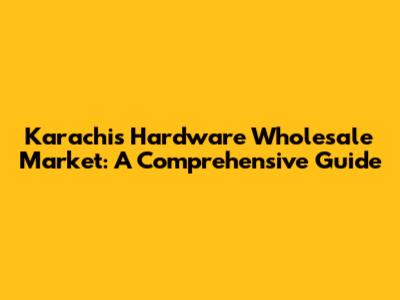 Karachi's Hardware Wholesale Market: A Comprehensive Guide