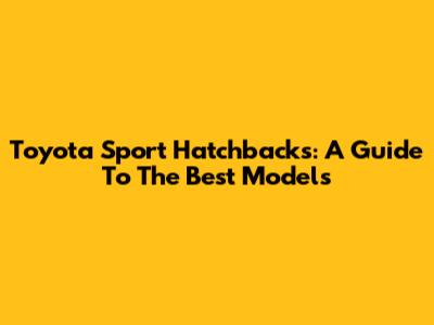 Toyota Sport Hatchbacks: A Guide To The Best Models
