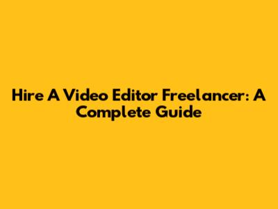 Hire A Video Editor Freelancer: A Complete Guide