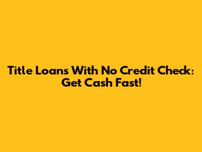 Title Loans With No Credit Check: Get Cash Fast!