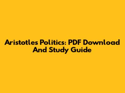 Aristotle's Politics: PDF Download And Study Guide