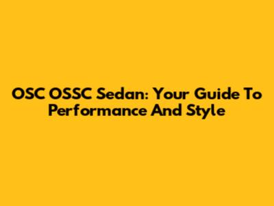 OSC OSSC Sedan: Your Guide To Performance And Style