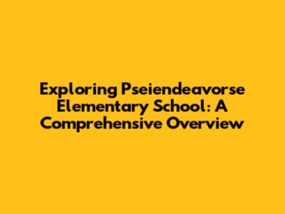 Exploring Pseiendeavorse Elementary School: A Comprehensive Overview