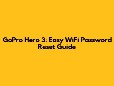 GoPro Hero 3: Easy WiFi Password Reset Guide
