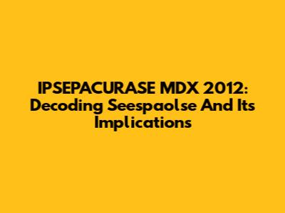 IPSEPACURASE MDX 2012: Decoding Seespaolse And Its Implications