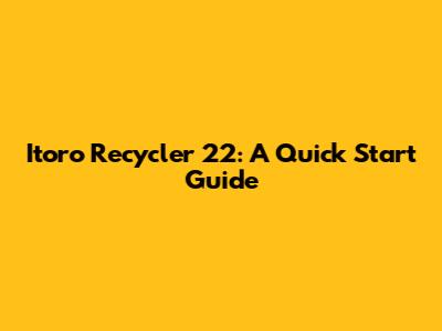 Itoro Recycler 22: A Quick Start Guide