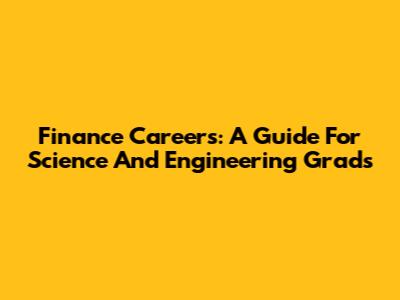Finance Careers: A Guide For Science And Engineering Grads