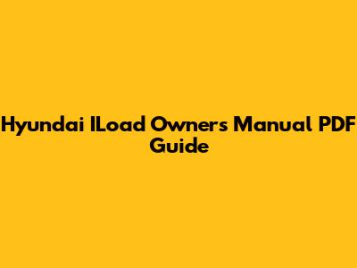 Hyundai ILoad Owner's Manual PDF Guide