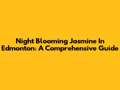 Night Blooming Jasmine In Edmonton: A Comprehensive Guide