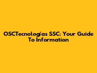 OSCTecnologías SSC: Your Guide To Information