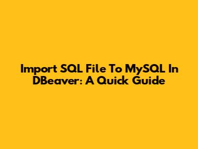 Import SQL File To MySQL In DBeaver: A Quick Guide