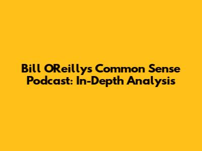 Bill O'Reilly's Common Sense Podcast: In-Depth Analysis