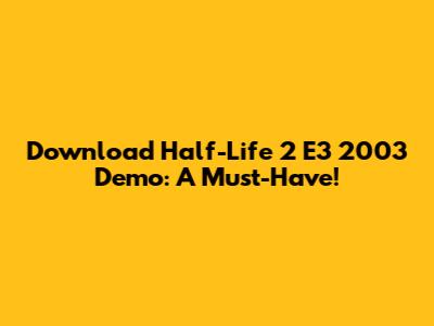 Download Half-Life 2 E3 2003 Demo: A Must-Have!