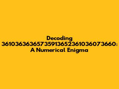 Decoding 36103636365735913652361036073660: A Numerical Enigma