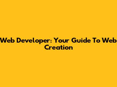 Web Developer: Your Guide To Web Creation
