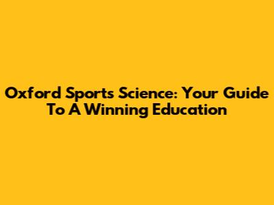Oxford Sports Science: Your Guide To A Winning Education