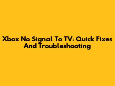 Xbox No Signal To TV: Quick Fixes And Troubleshooting