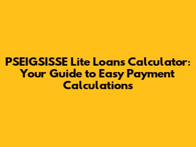 How to Use a PSEIGSISSE Lite Loans Calculator