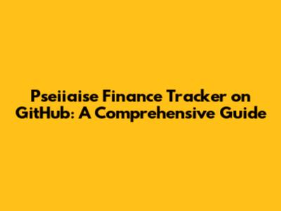 How to Get Started with Pseiiaise Finance Tracker on GitHub