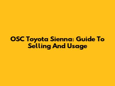 OSC Toyota Sienna: Guide To Selling And Usage