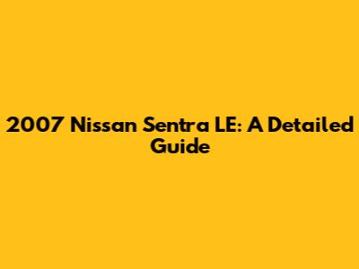 2007 Nissan Sentra LE: A Detailed Guide