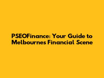 Hey everyone, let's dive into the world of PSEOFinance! This guide is all about navigating the financial landscape in Melbourne, Australia. We're going to break down everything from the basics to some more complex stuff, making it easy to understand even if you're not a finance guru. Think of it as your friendly, no-nonsense introduction to the financial services sector, specifically focusing on how it all plays out in the vibrant city of Melbourne. We'll be touching on key players, crucial concepts, and even some insider tips to help you make informed decisions. So, grab your coffee, get comfy, and let's explore PSEOFinance together!