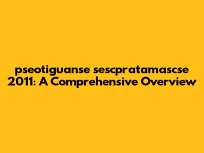 Let's dive into the intriguing world of "pseotiguanse sescpratamascse 2011." This isn't your everyday term, and understanding its context and implications requires a detailed exploration. So, buckle up, guys, as we unpack this unique phrase and see what makes it tick.