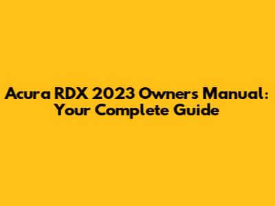 Acura RDX 2023 Owners Manual: Your Complete Guide