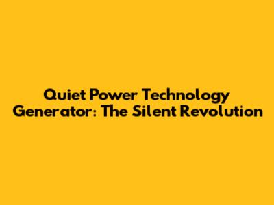 Hey guys! Ever wondered how to get power without all the racket? Well, let’s dive into the world of quiet power technology generators. These aren't your grandpa's loud, clunky generators. We’re talking about sleek, efficient machines designed to keep the peace while keeping your lights on.