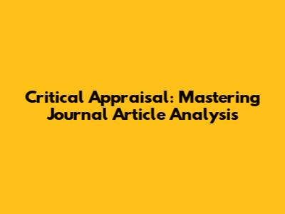 Critical Appraisal: Mastering Journal Article Analysis