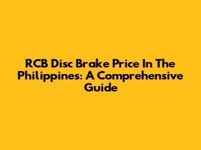 RCB Disc Brake Price In The Philippines: A Comprehensive Guide