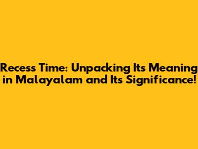 Hey guys! Ever wondered about recess time meaning in Malayalam? Well, you're in the right place! Today, we're diving deep into what 'recess' means in Malayalam, why it's super important, and how it impacts the lives of kids (and even adults!) who speak the language. Get ready for a fun, informative ride! We'll explore the essence of recess, its cultural relevance, and why it's a vital part of the educational journey in Kerala and beyond. So, buckle up, and let's unravel the secrets of recess time, Malayalam style! From the playground to the classroom, we'll cover everything you need to know about this cherished period of the day. So, whether you're a student, a parent, or just curious, this article is for you. Let's start this journey together!