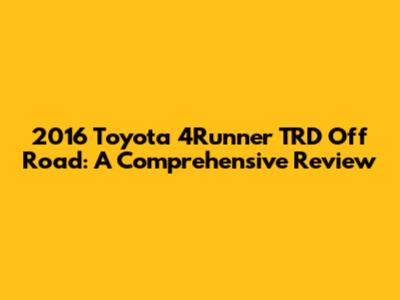 2016 Toyota 4Runner TRD Off Road: A Comprehensive Review