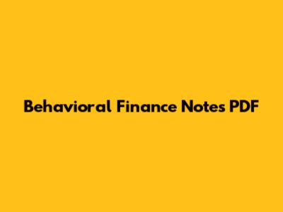 Behavioral Finance Notes PDF