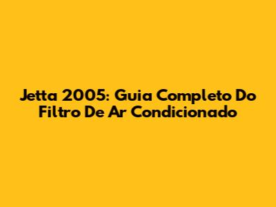 Jetta 2005: Guia Completo Do Filtro De Ar Condicionado
