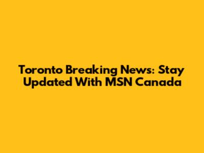 Toronto Breaking News: Stay Updated With MSN Canada
