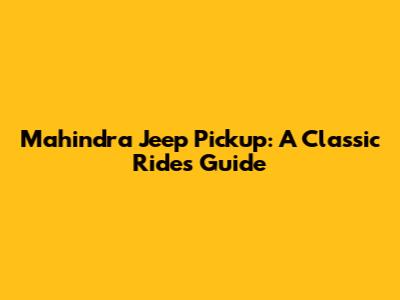 Mahindra Jeep Pickup: A Classic Ride's Guide