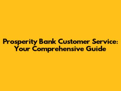 Prosperity Bank Customer Service: Your Comprehensive Guide