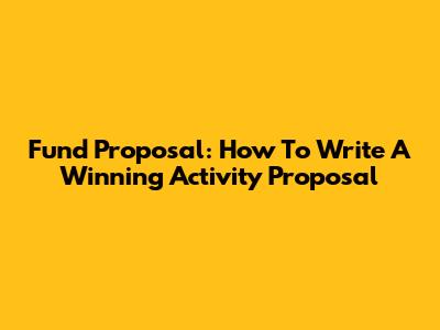 Fund Proposal: How To Write A Winning Activity Proposal