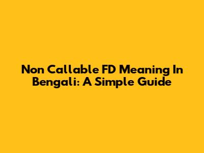 Non Callable FD Meaning In Bengali: A Simple Guide