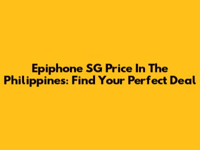 Epiphone SG Price In The Philippines: Find Your Perfect Deal