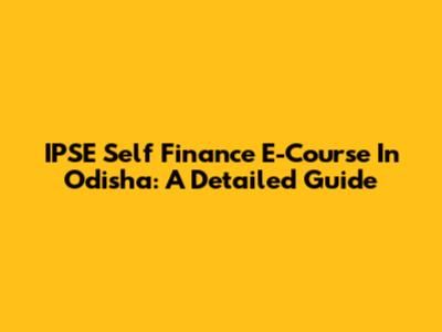 IPSE Self Finance E-Course In Odisha: A Detailed Guide