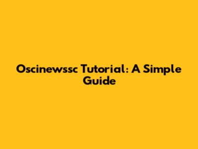 Oscinewssc Tutorial: A Simple Guide