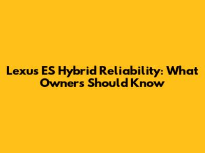 Lexus ES Hybrid Reliability: What Owners Should Know